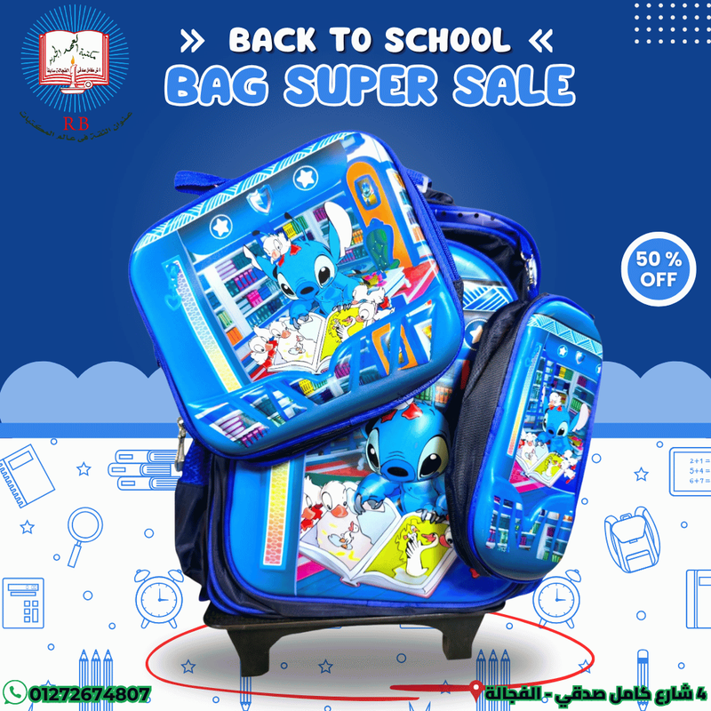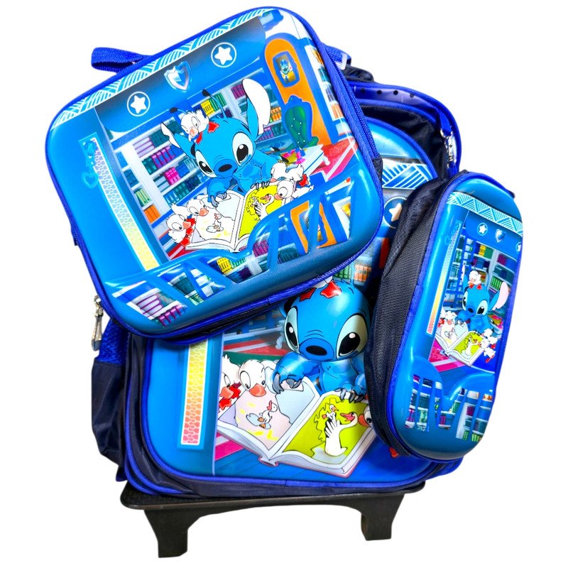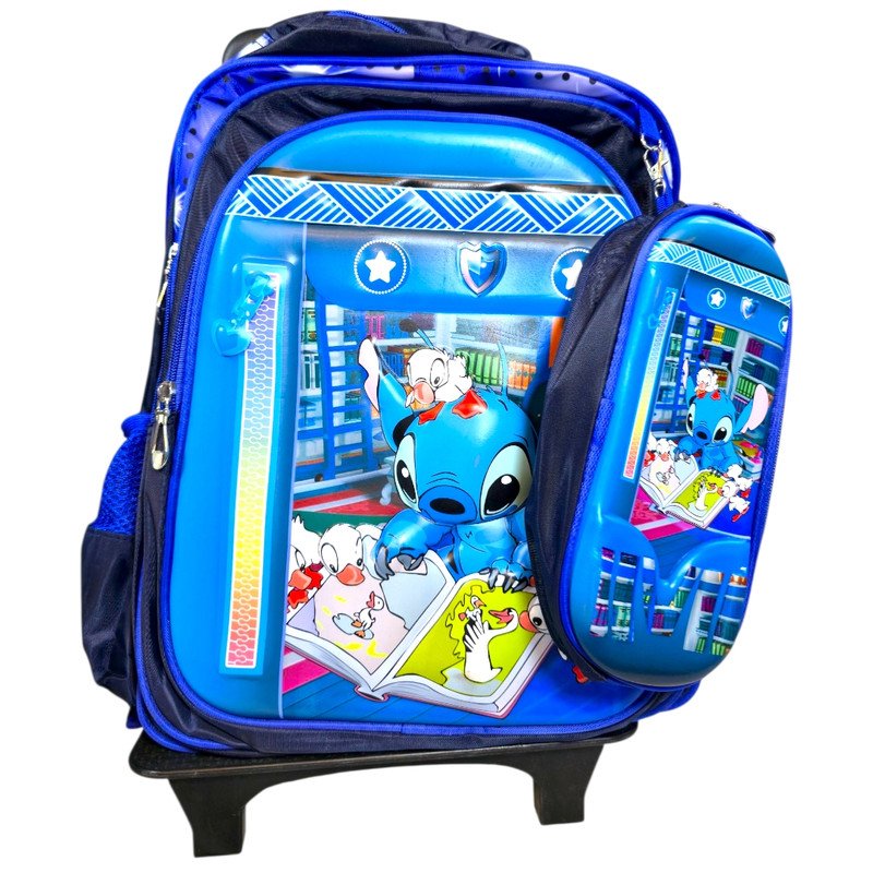 شنطة مدرسة ترولي عجل بينور + شنطة لانش بوكس ومقلمة مقاس 16